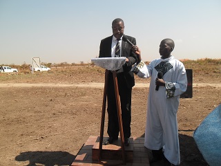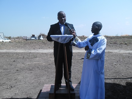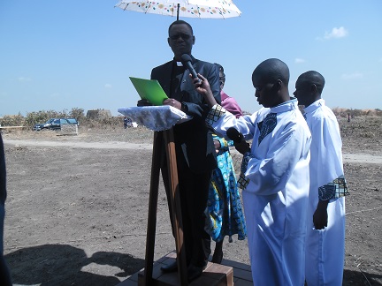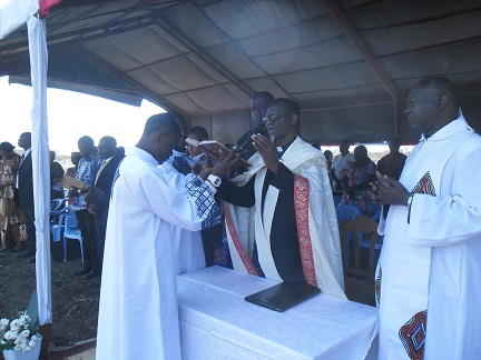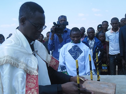 Monseigneur Denis Moto pendant la cérémonie de bénédiction du chantier du centr d' accueil et de formation.