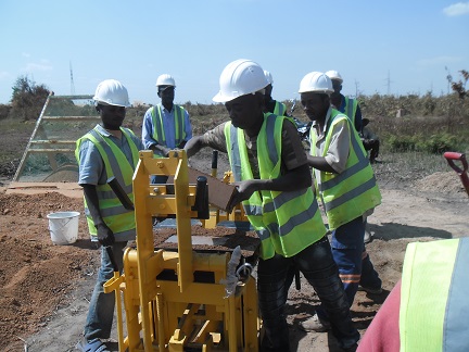uns séance de démonstration de production des BTC ( bloc de terre crue).